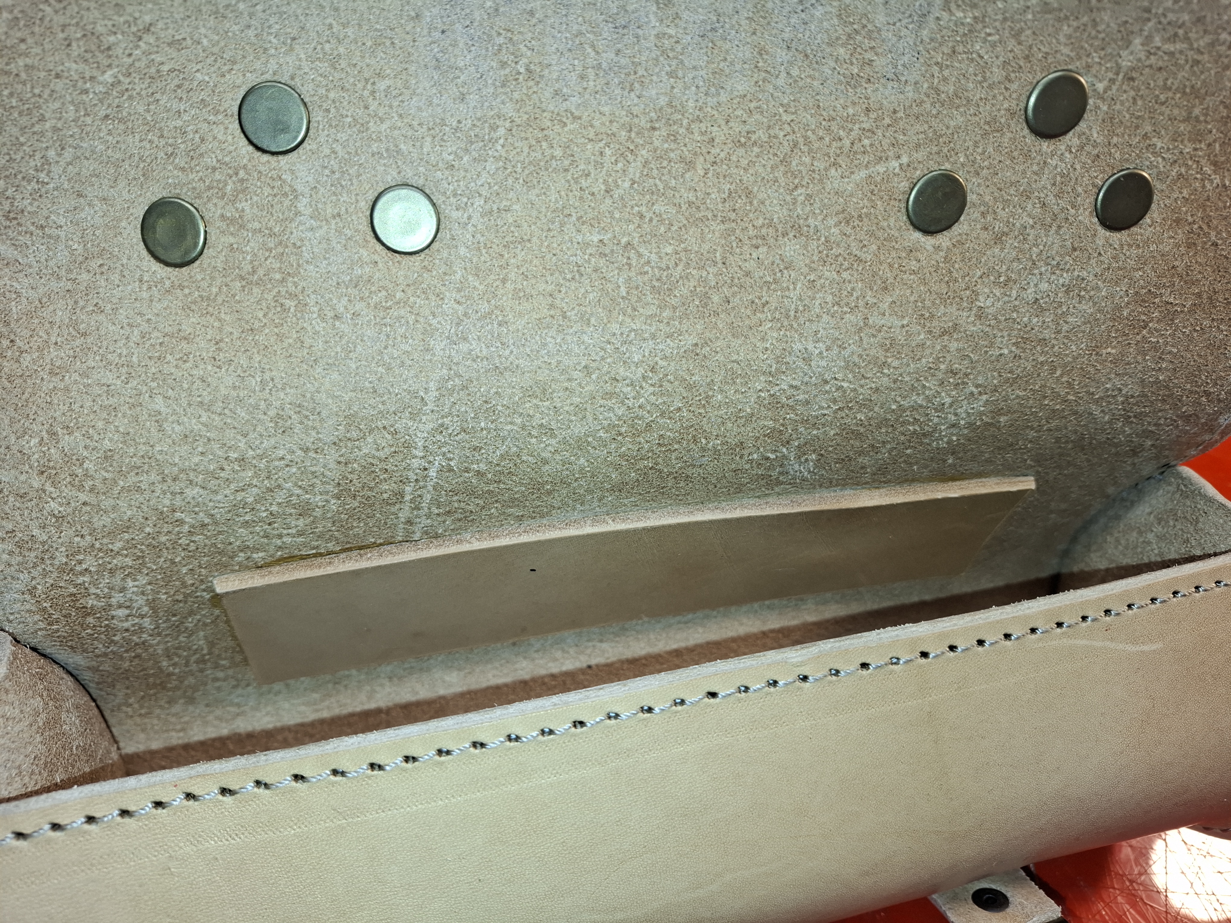 Válec lze vyrobit s použitím nýtů i přezek v povrchové úpravě staromosaz - aby byl slazen s motorkou se zlatými linkami motocyklu.